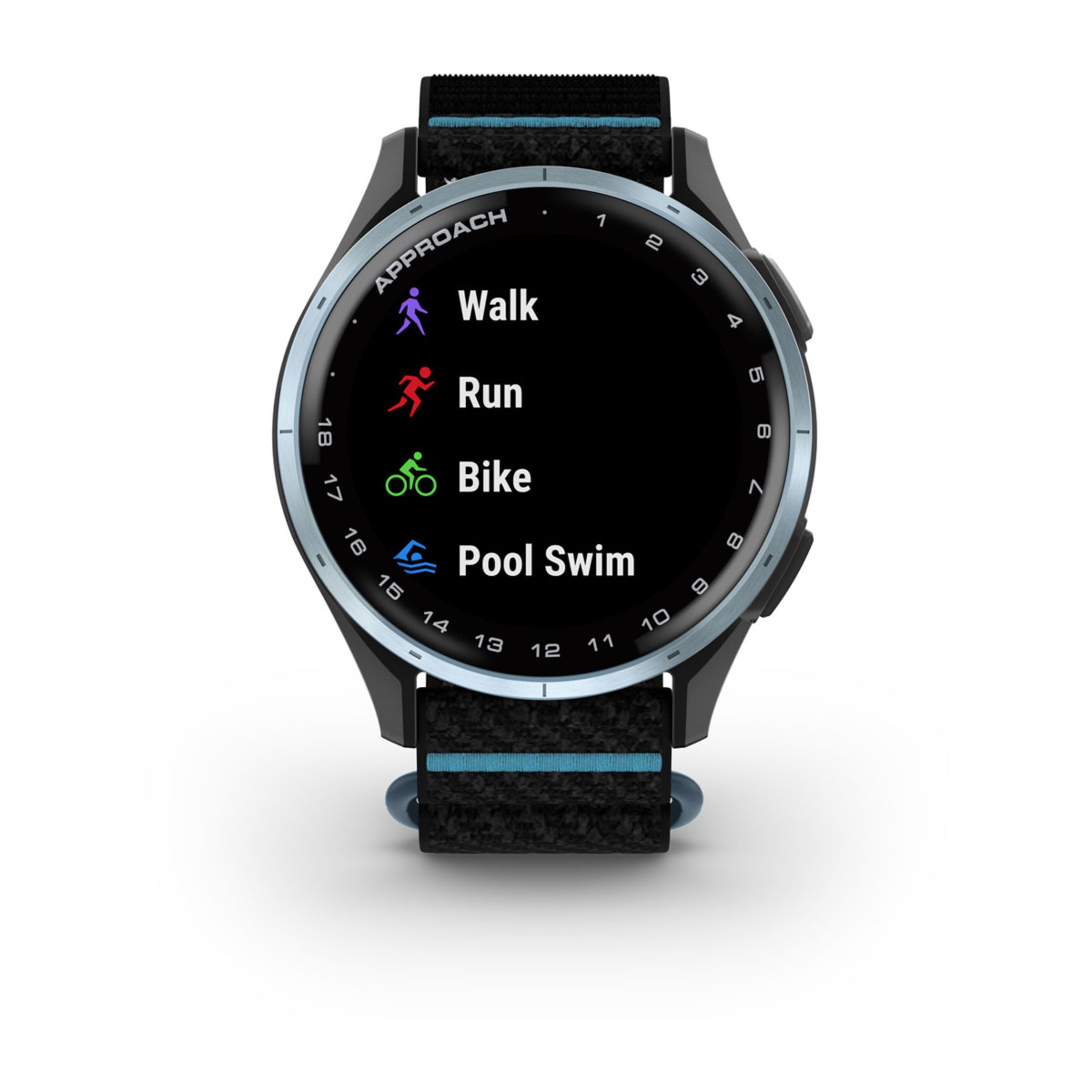 Approach J1 – Cloud Blue Aluminum Bezel With Black/Azure Comfortfit Fabric Band